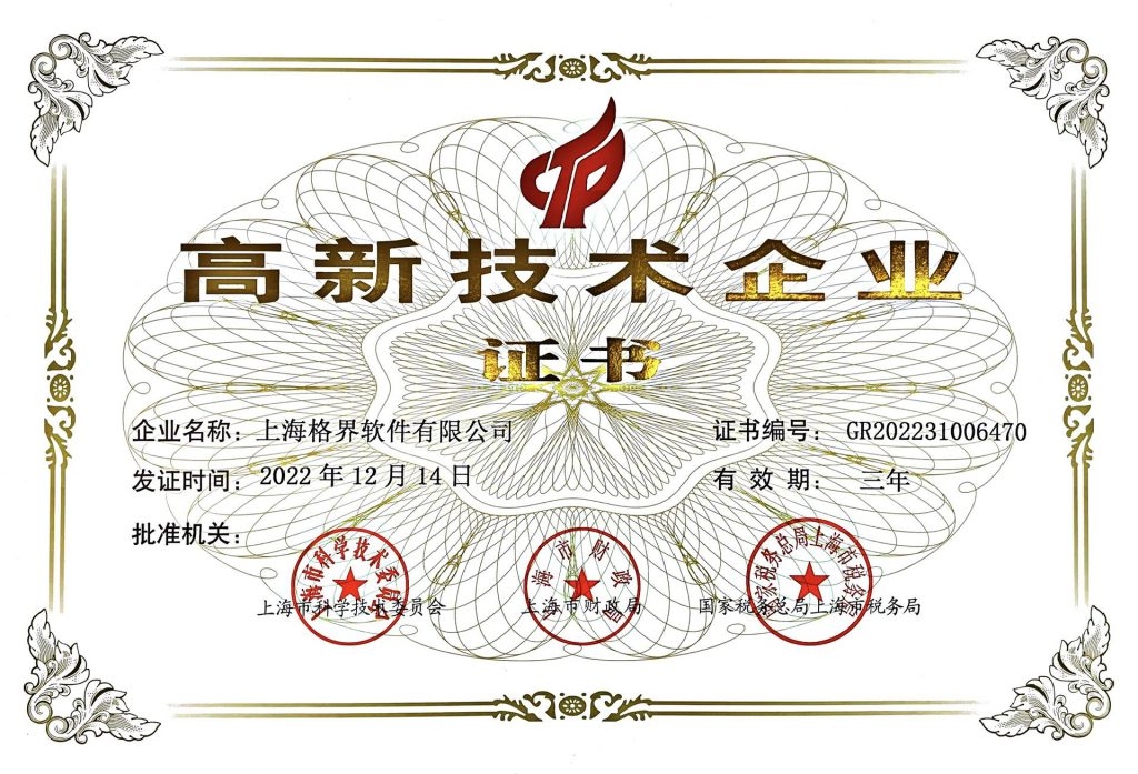 格界软件荣获“高新技术企业”认证!